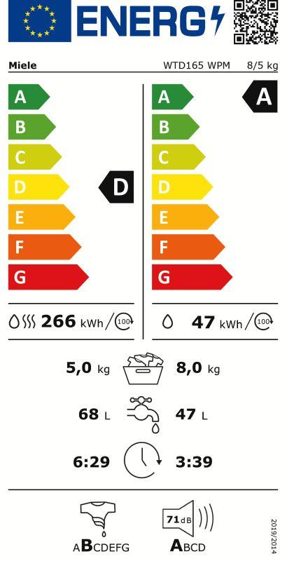 Miele WTD 165 WPM 8/5kgWasch-Trockner, EEK: D8 kg waschen und 5 kg trocknen max. 1500 U/min Miele@home - clever vernetzt "Why Miele"- Waschtrockner WT1 Art.-Nr.: 0155015 Abb. ähnlich