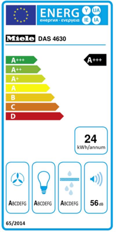 MIELE DAS 4630 ObsidianschwarzFlachschirm-Dunstabzugshaube3 Leistungsstufen plus 1 Intensivstufe, EEK:: A+++ LED-Beleuchtung, 60 cm breit Touch-Control-Bedienung Art.-Nr.: 2955211 Abb. ähnlich