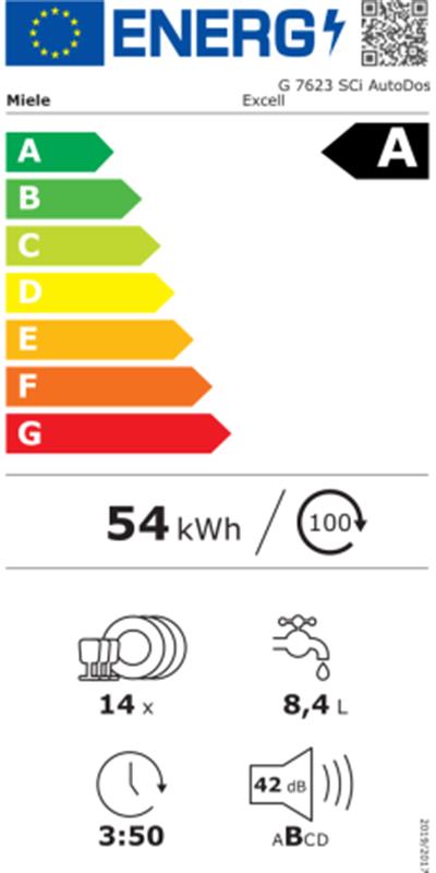 MIELE G 7623 SCi AutoDos E EDEinbau-Geschirrspüler integr.Edelstahl CleanSteel, EEK: A 42 dB, MaxiComfort Körbe AutoDos mit PowerDisk Miele@home, AutoOpen-Trocknung Art.-Nr.: 3355416 Abb. ähnlich